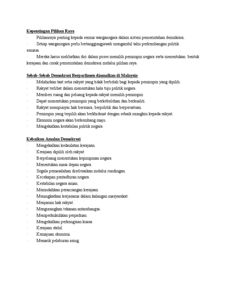 · mengekalkan kestabilan politik negara. Pilihan raya umum, kepercyaan rakyat, pentadbiran kewangan negara, keutamaan pemimpin. Sejak tahun 1957, malaysia mengekalkan sistem politik pelbagai parti yang mana parti politik yang memperoleh majoriti kerusi di dewan rakyat atau dewan . Dari segi pilihan raya yang diadakan, jaminan hak mengundi. Parti perikatan berjaya membentuk kerajaan dengan pemimpinnya . Pilihan raya bermula di peringkat majlis perbandaran, negeri dan seterusnya pilihan raya majlis perundangan persekutuan 1955. Trust analysis of malaysian community on the government. Malaysia adalah antara negara di dunia yang masih mengamalkan sistem pemerintahan raja berperlembagaan. Kebaikan amalan demokrasi · mengekalkan kedaulatan kerajaan. · kerajaan dipilih oleh rakyat. Ekonomi negara akan berkembang maju.