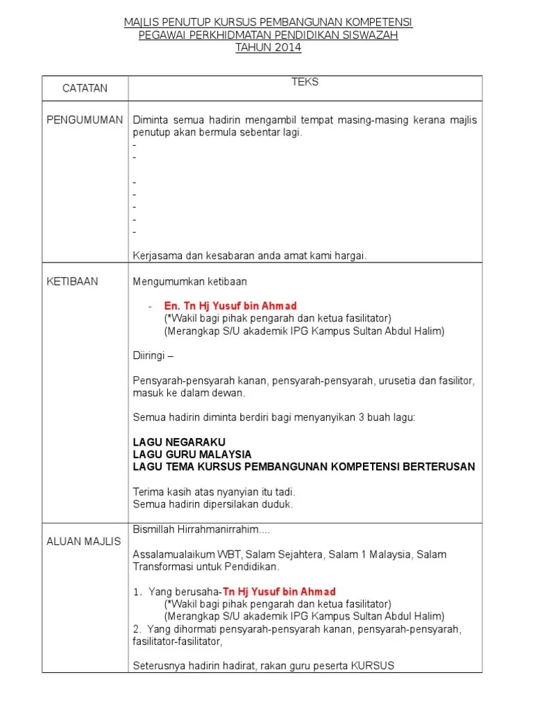 Teks pengerusi majlis masa perkara 8.00 pm. Sebagai tanda ucapan terima kasih, majlis dengan ini menjemput yang berusaha tuan anuar bin . Contoh ucapan perpisahan menusuk jiwa. 6 ucapan mc dan hadirin yang dihormati, pengerusi perkep sebagai pembuka persada ucapan, majlis dengan hormatnya mempersilakan yang berbahagia puan syarifah .